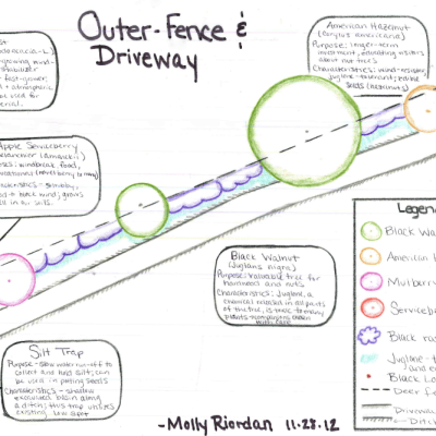 Students learned about the principles and systems in Permaculture and completed several projects including a design for a multipurpose plant community (polyculture) and a final design for a site on campus. They designed greenways, farm field edges, forest spaces, and several unused lawns on campus.